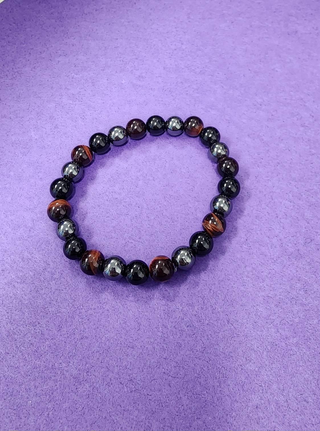TOURMALINE, RED TIGERS EYE, HEMATITE BRACELET