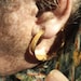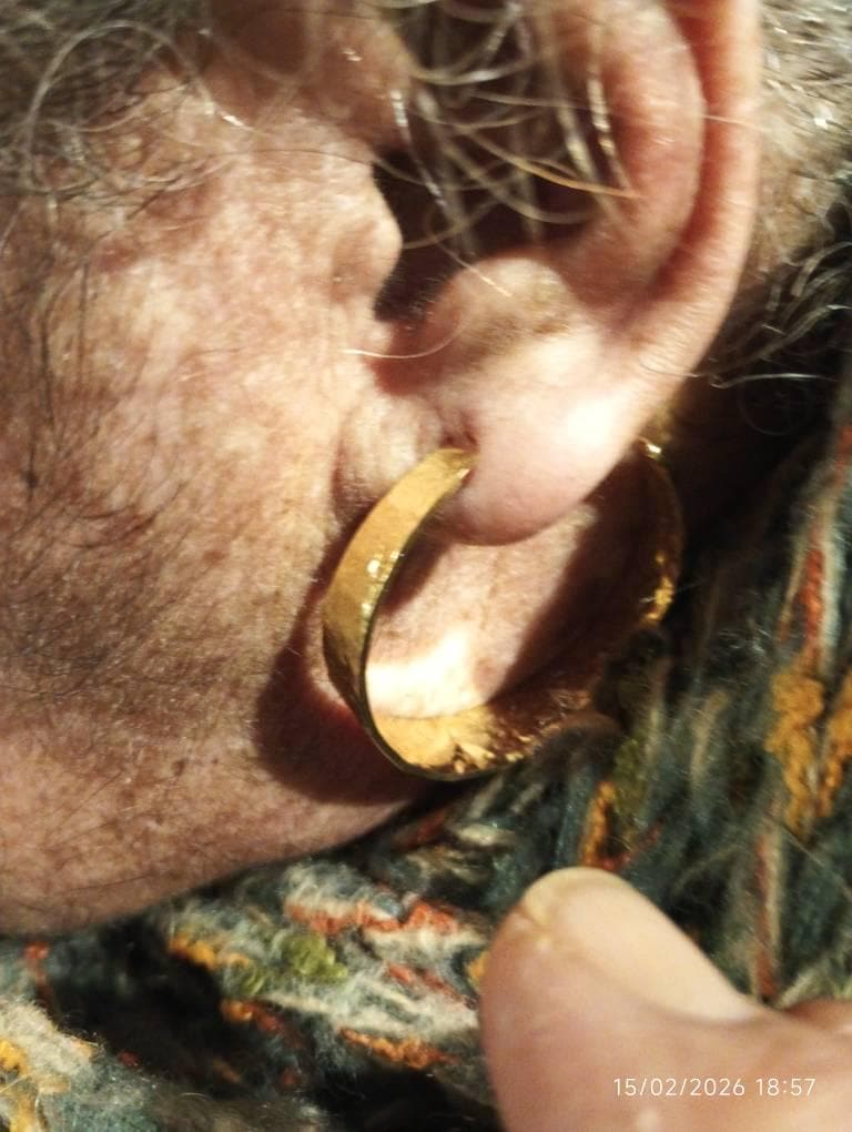 Gorgeous pair of gold half hoop earrings, with a Hammered Finish.