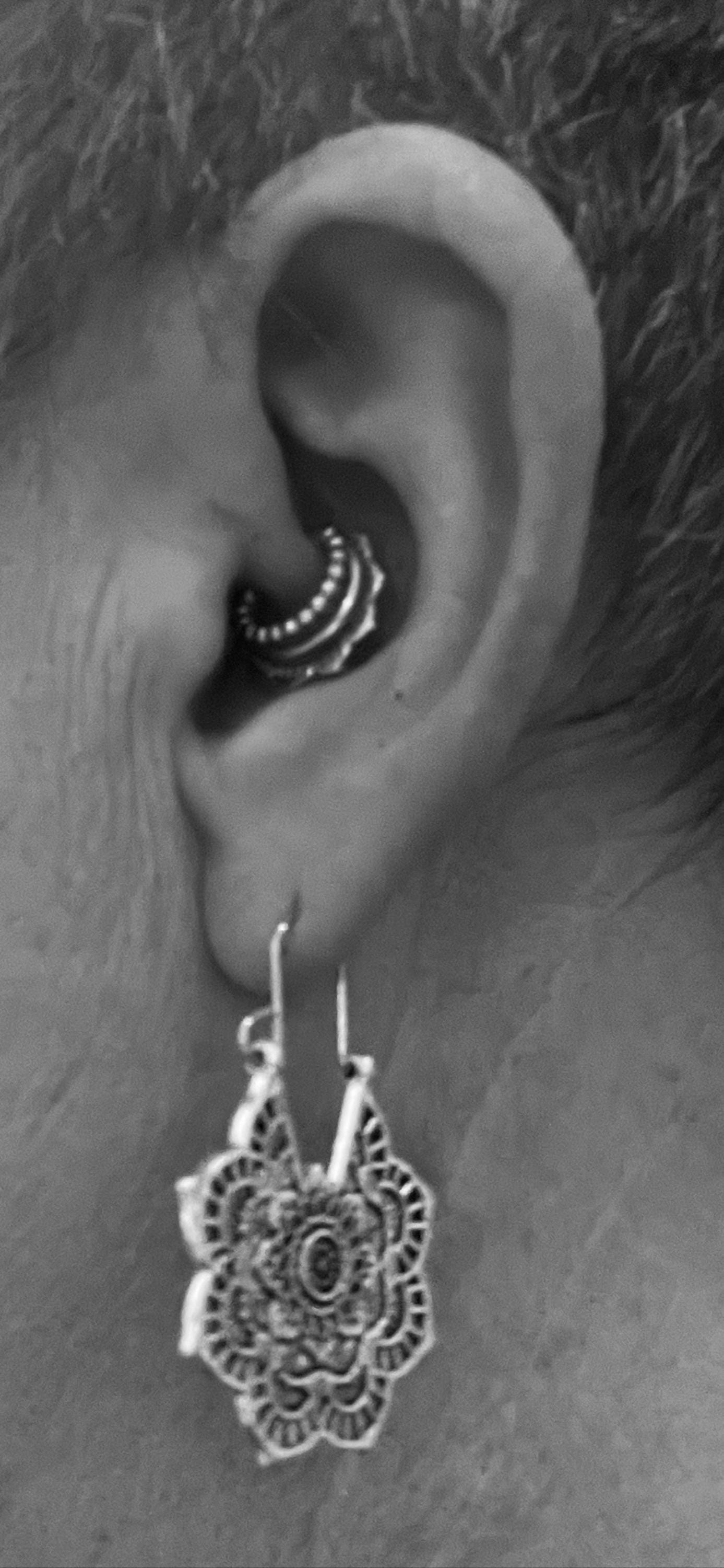SILVER BRASS FLOWER EARRINGS