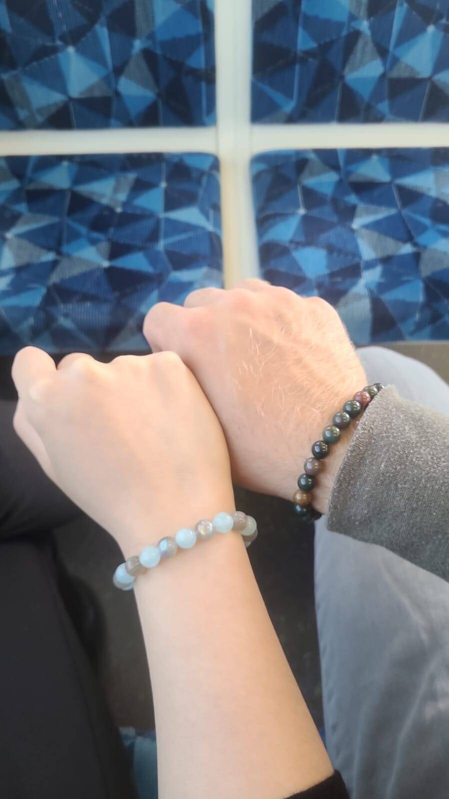 These bracelets have wonderful properties, they promote awakening, while shielding negativity (see stones descriptions below for more details). The set was designed to help being true to yourself.